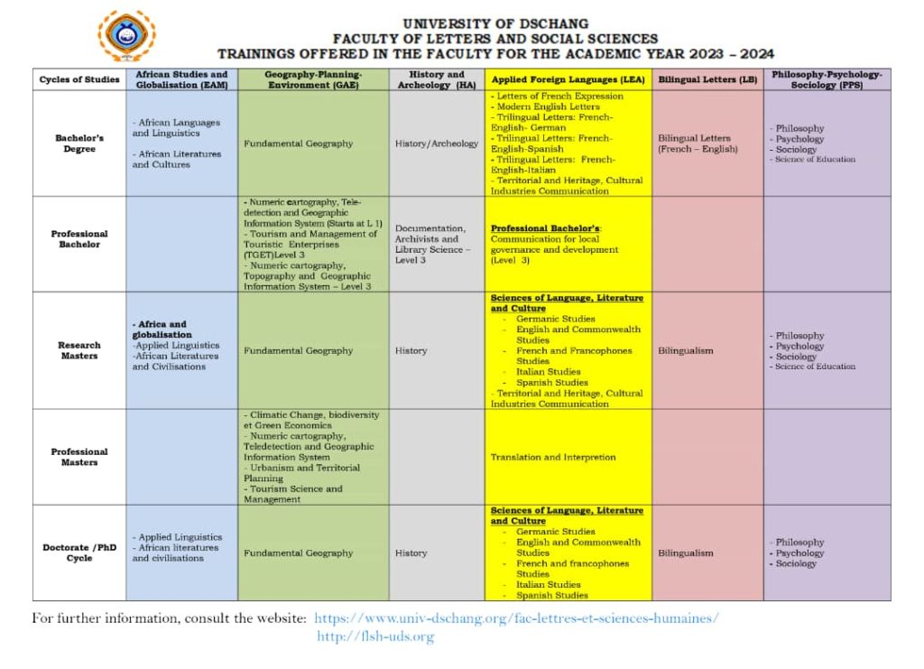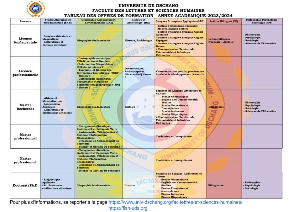 TABLEAU DES OFFRES DE FORMATION – ANNEE ACADEMIQUE 2023/2024 / Actualités / Par FALSH_DSCHANG_Admin TABLEAU DES OFFRES DE FORMATION – ANNEE ACADEMIQUE 2023/2024